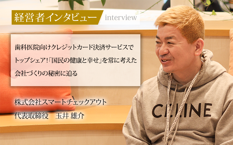 低手数料のキャッシュレス決済システムを構築し、歯科医院と患者の両方に利益をもたらす事業を推進する玉井雄介氏は、最先端テクノロジーに精通しながらも、あえて終身雇用を重視し、社員の生き方を大切にする、人間味溢れる方だった。