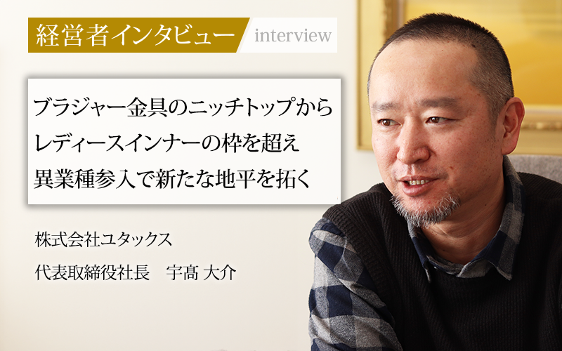 株式会社ユタックスは、シームレス技術や多品種展開のインナーパーツの技術力をいかし、下着をはじめ、スポーツウェア、メディカル用品などを製造販売している。グローバルに事業を展開し、さまざまな分野でトップクラスのシェアを獲得しているニッチトップの会社だ。高品質低コストの商品展開で高い評価を得ている。