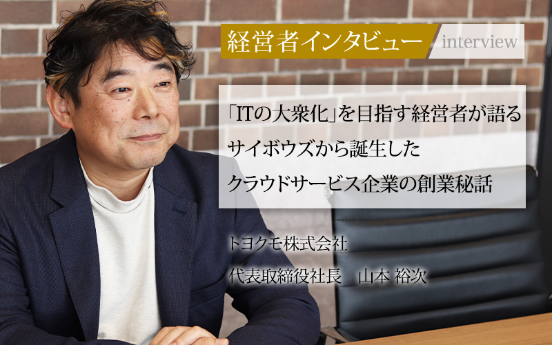 トヨクモが一体どのようにしてサイボウズから生まれたのか、同社の代表取締役社長、山本裕次氏に創業秘話を聞いた。