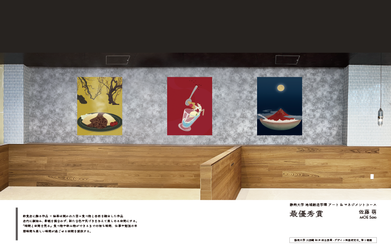 「地域の人々が集って楽しめる場所を作りたい」と考え、文具、児童書、カフェを融合した店を開きました。老若男女を問わず誰もが気軽に立ち寄れる空間を目指しています。そして、「若者の活躍の場になれば」と静岡大学の川原﨑准教授と連携し、学生が描いた絵を店内に展示しています。