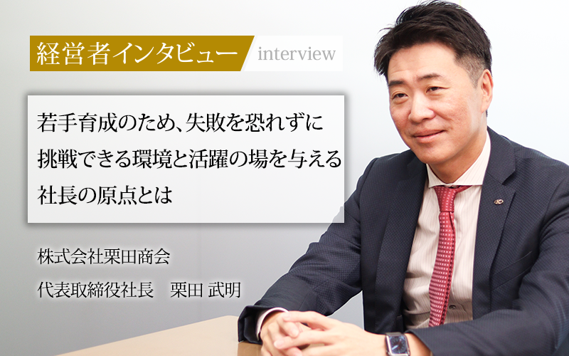 同社をけん引する代表取締役社長の栗田武明氏は、2社の勤務を経て家業の社長に就任した。就任までのエピソードや若手育成などについて、話をうかがった。