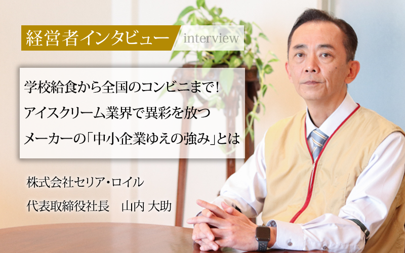 福岡県朝倉市に本社を置く株式会社セリア・ロイル。九州地方の学校給食でおなじみのフローズンデザートをはじめ、全国の外食チェーンやコンビニエンスストアのメニュー開発も手がけている食品メーカーだ。代表取締役社長の山内大助氏に、就任時の苦労や今後の展望、企業の強みについてうかがった。