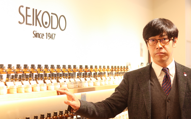 5年前に、一般消費者向けにアロマショップ「SEIKODO」をおしゃれなショップが多い京町堀で開店させていただきました。京町堀の方々には喜んでいただいており、アロマを扱う会社が多数ある中で、「いろいろな会社を見てきた結果、盛香堂石田商店が良い」というお声をいただくことがあり、嬉しいですね。