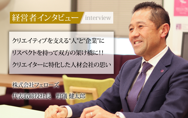 就職活動時からクリエイティブ業界に興味を持っていた野儀社長。クリエイター特化の人材紹介サービスに加えて、今後は将来的な活躍を支える教育分野にも注力していくと語っている。熱きクリエイターと企業をつなぐ架け橋となる株式会社フェローズに今後も注目だ。