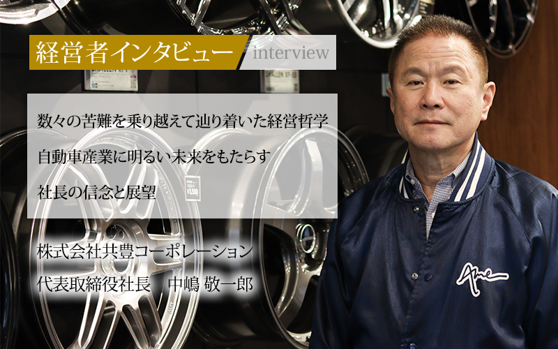自動車のホイール製品の企画・卸販売事業を展開する株式会社共豊コーポレーションは、人材の採用と育成を核として成長し続けてきた。発展の根底にある経営哲学と、今後の事業拡大の展望を代表取締役社長の中嶋敬一郎氏にうかがった。