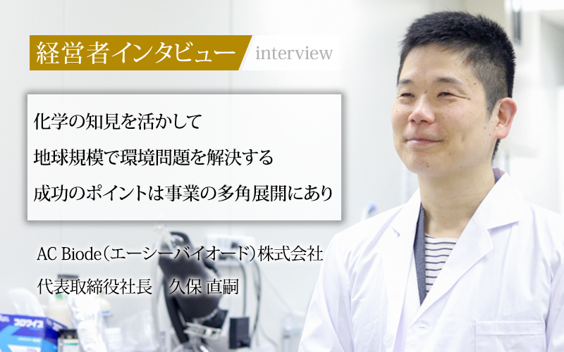 温室効果ガス排出量の削減や、グローバルなゴミ問題の解決に取り組んでいるAC Biode株式会社。独立型交流電池の開発や、プラスチックからメタノールへの解重合(※)に成功するなど、世界初の試みが業界でも話題を呼んでいる。