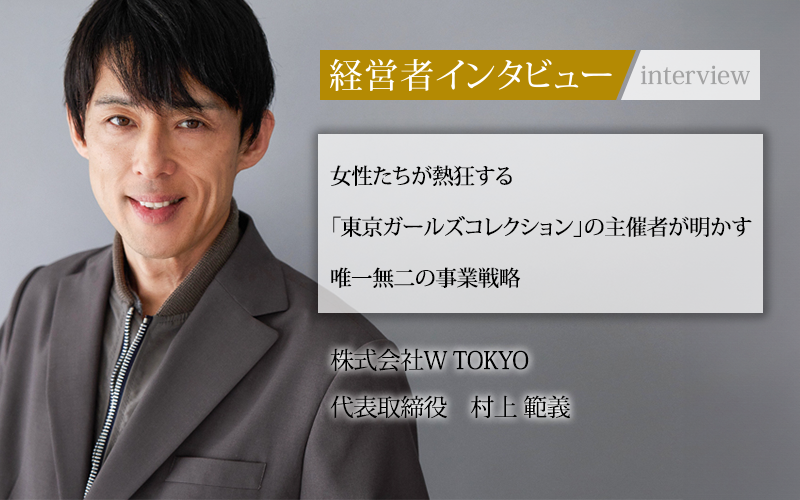 村上範義/早稲田大学社会学部卒業後、大手広告代理店へ就職。転職後、キャスティングプロデューサーとして東京ガールズコレクションの立ち上げから参画。2012年、東京ガールズコレクションのチーフプロデューサーに就任し、キャスティングからクライアントへの営業やメディアとの渉外まで、全部門を統括。2014年、株式会社F1メディアの代表取締役に就任。2016年、株式会社W TOKYOへと社名変更し、代表取締役に就任。