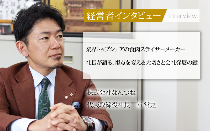 業界トップクラスの食肉スライサーメーカーとして知られる同社の代表取締役社長、南常之氏は、顧客企業の売上に貢献することを第一に考え、赤字だったなんつねを発展させた。
