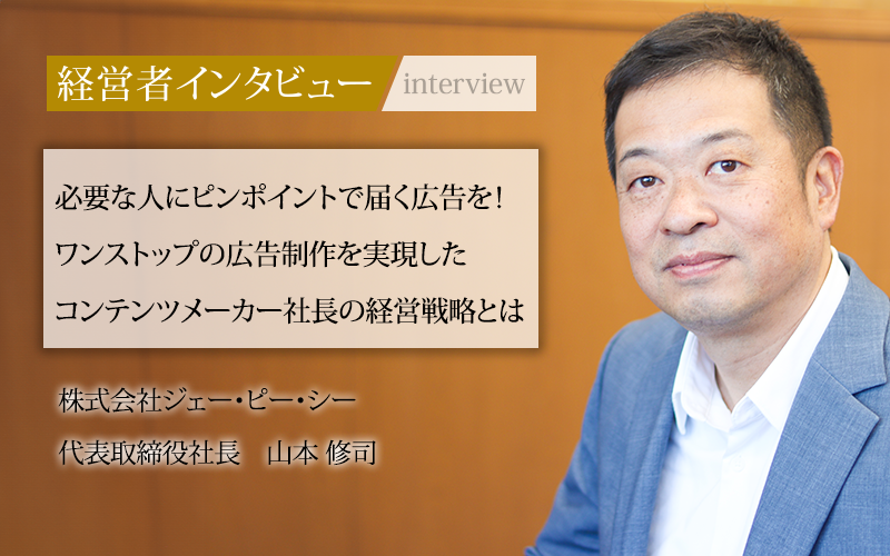 父親が立ち上げた会社を引き継ぐことになり、異業種から広告業界へ転身した山本社長。「コンテンツとは何か」と基本に立ち返り、客観的に業界を分析してきたからこそ、人々の興味を引く広告を生み出せるのだろう。株式会社ジェー・ピー・シーは、広告の力であらゆる業界を盛り立てていくことだろう。