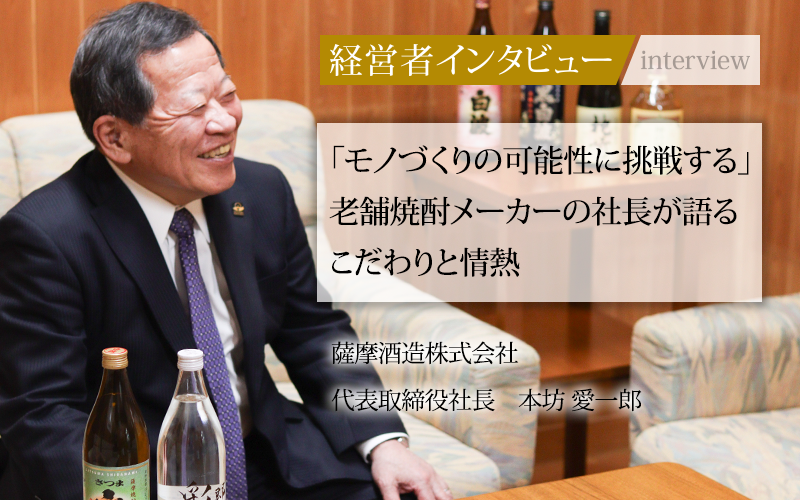 本坊愛一郎/1955年鹿児島生まれ。神戸商科大学(現兵庫県立大学)卒業。1980年に三国コカ・コーラボトリング株式会社(現コカ・コーラボトラーズジャパン株式会社)に入社、他社も含め2年半の修行を経て、1982年に薩摩酒造株式会社に入社。1985年に大阪営業所の初代所長を務め、1996年に取締役東京支店長就任。2011年に専務取締役を経て、2017年代表取締役社長に就任。地元への地域貢献活動にも注力している。