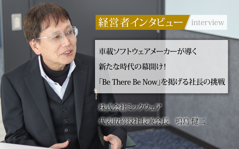ナビゲーションシステムを主軸に、自動車業界向けのソフトウェア開発を担う日本随一のテック企業がある。GAFAに比肩する技術を擁する、株式会社ミックウェアだ。次世代のプラットフォーマーを目指す構想について、代表取締役社長兼会長の鳴島健二氏にうかがった。
