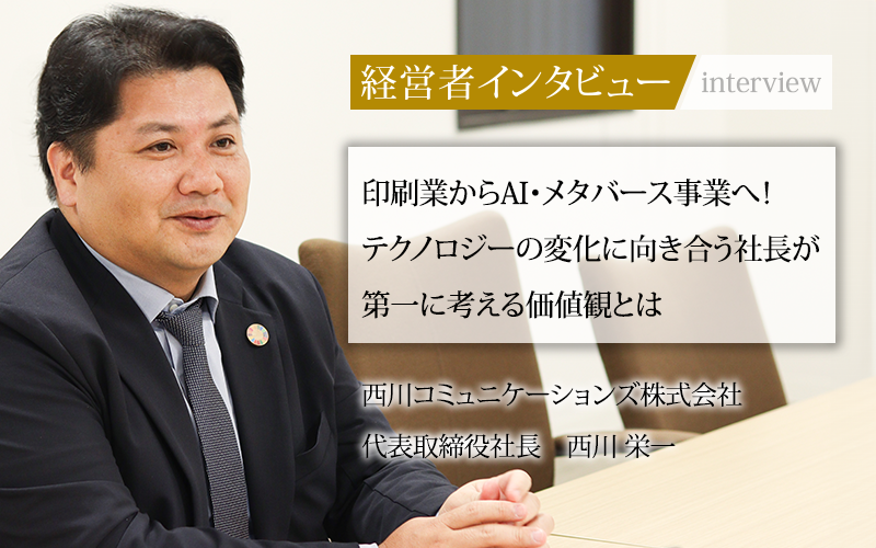 西川栄一/1976年愛知県生まれ、上智大学卒。丸紅株式会社などでの修業期間を経て、2003年に西川コミュニケーションズへ入社。2016年に同社代表取締役社長に就任。