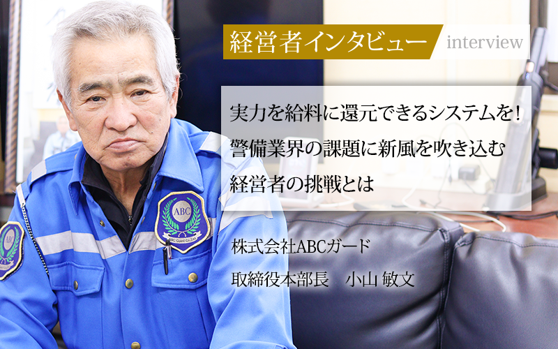 小山敏文/1952年兵庫県生まれ。東洋大学付属高校を卒業後、運送業を営む両親の紹介で地元の運送会社に入社。厳しい現場作業から始まり、やがて神戸支店のリーダーとして豊富な経験を積む。2014年、株式会社ABCガードを設立し、現在取締役本部長として同社をけん引する。