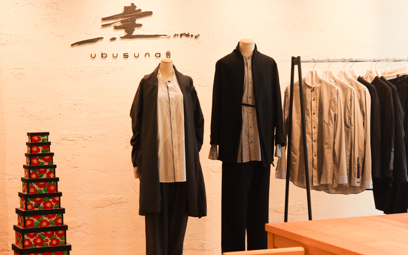神田社長は、産土という言葉に秘められた「土着」の大切さや価値、可能性をお酒だけでなくさまざまな世界に広めていきたいと考えています。その志に惹かれて、私たちも服の世界で産土の世界を実現してみようと立ち上げたのが、2024年1月に店舗をオープンし、販売を開始した「ubusuna」ブランドです。