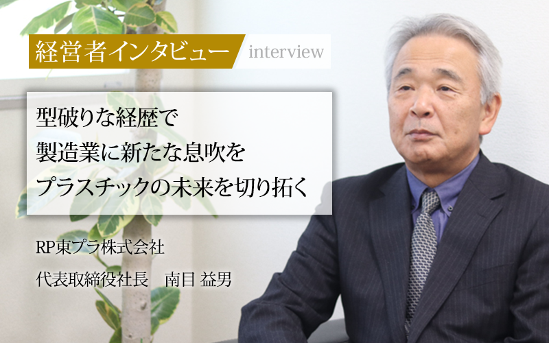 同社をけん引する代表取締役社長の南目益男氏の経歴は、丸紅入社からRP東プラ社長就任に至るまで、多くの偶然が重なったものだという。