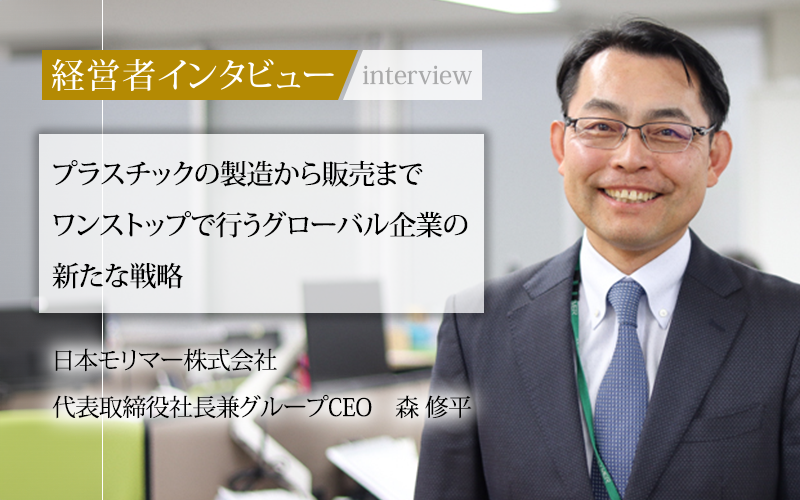 森修平/1971年三重県生まれ。1993年ウォーリック大学(英国・国立総合大学)BSc (Hons) in Mathematics学士修了。1993年ドイツ住友商事会社入社。1999年ワシントン大学セントルイス(米国・私立大学)経営大学院修了、MBA取得。1999年日本モリマー株式会社に入社。2002年モリマーエスエスピー株式会社の取締役に就任。2006年モリマープレミックスの常務取締役に就任(兼務)。2008年モリマーエスエスピーの代表取締役社長に就任。2011年日本モリマーの代表取締役社長兼グループCEOに就任。事業の多角化とグローバル化を図り、数々のM&Aを成立させる。現在、国内18社(研究センター含む)、海外12社を束ね、One Molymerをスローガンにシナジーを創出し、プラスチックのワンストップソリューションを提供している。