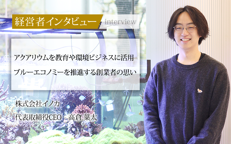株式会社イノカ(INNOQUA)の社名は、「innovate(新しいものをつくり出す)」と「aquarium(アクアリウム)」をかけ合わせた造語だ。同社は海洋環境を水槽の中に再現する技術を独自開発した。その技術を活かし、環境教育プログラムや、海洋治験サービスを提供している。