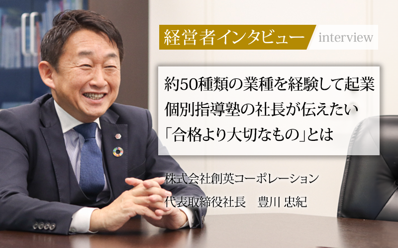 個別指導塾でありながら「合格より大切なものがある」と熱く語る代表取締役社長の豊川忠紀氏に、その真意を聞いた。