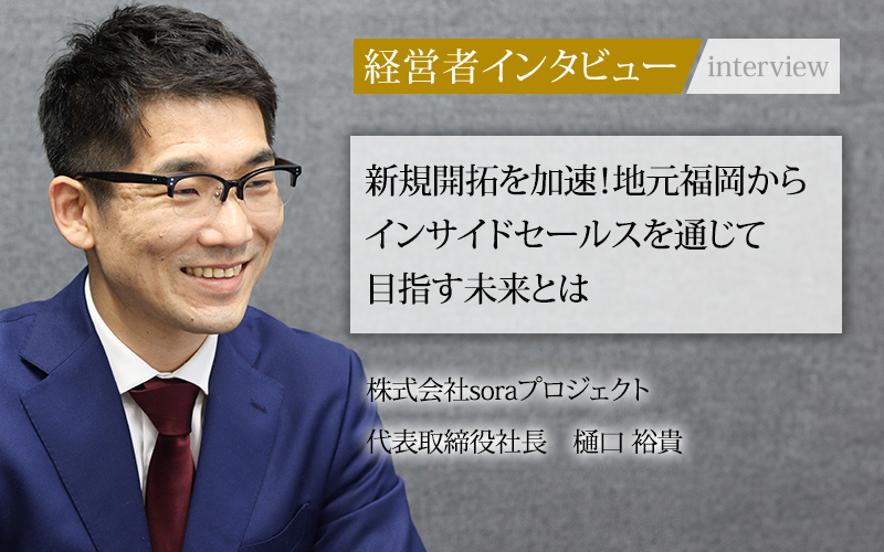 樋口裕貴/福岡県出身。2012年に株式会社soraプロジェクトに入社し、テレアポ・インサイドセールス事業に携わる。専門は法人向けのアウトバウンド営業。営業部長を経て、2021年に代表取締役社長に就任。