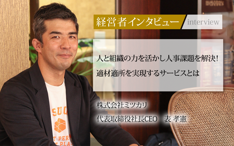 株式会社ミツカリは、幸せに働く人を増やすために人と組織のマッチングの精度を向上すべく、企業の人事に関わる問題解決をサポートしている。「社会全体の適材適所」をミッションに事業展開している同社は、どのように組織課題に取り組んでいるのか。代表取締役社長CEOの表孝憲氏に、事業内容やHR(人材)業界の未来像について聞いた。