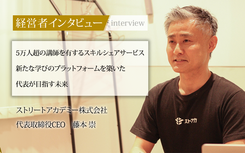 12歳から24歳までをアメリカで過ごした藤本代表。新しいことを学び続ける姿勢からストリートアカデミーを創設し、多くの人々に対して学びの場を提供し続けている。今後も受講者と講師の新しい学びをサポートし続ける藤本代表を応援したい。