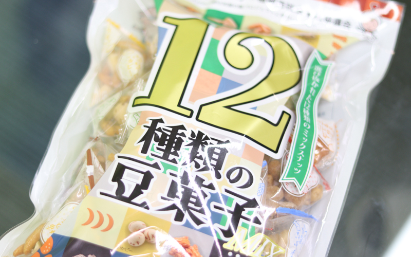 30代から60代の女性をターゲットとしたおつまみです。ピーナッツやアーモンド、あられなどを組み合わせた個包装のお菓子12種類を1パックにまとめています。「色々な味を少しずつ食べたい」という声を受けてつくりました。パッケージには、弊社のキャラクターである「福ちゃん」と福岡市の社会福祉協議会のキャラクターである「ここっとちゃん」が描かれています。