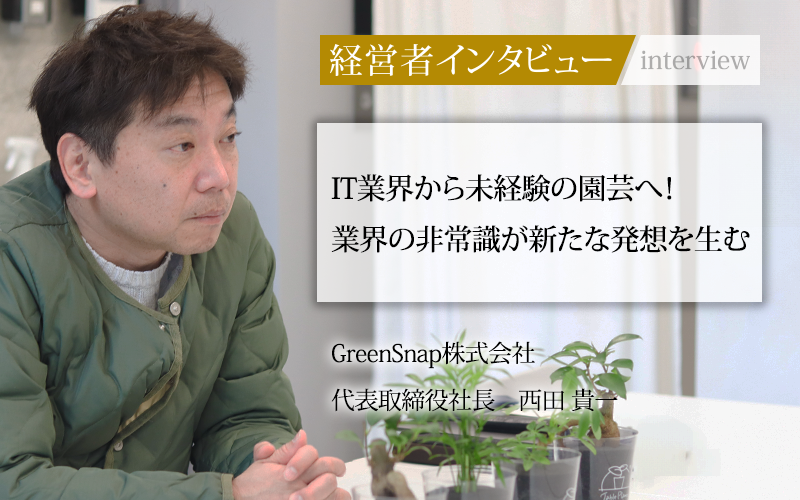 そんな園芸業界でAI技術を駆使し、植物好きが楽しめるコミュニティサービスを展開するGreenSnap株式会社。1つの業界にとらわれない発想力を発揮し、他業界と連携して成長を推し進める同社の代表取締役社長、西田貴一氏に起業のきっかけや規模拡大のための企業戦略をうかがった。