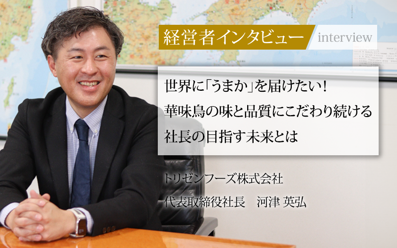 生産者と手を取り、こだわりの食品を届けるトリゼンフーズの代表取締役社長である河津英弘氏に、メイン商品のブランディングや今後の事業展開などについてうかがった。