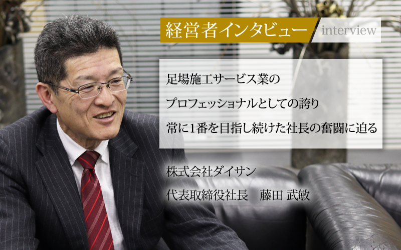 今回は、最高品質の足場づくりに心血を注ぐ株式会社ダイサンの社長に、会社の今後の展望や若者に向けてのメッセージなどをうかがった。