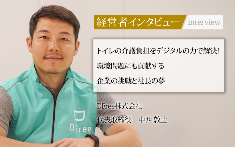 代表取締役の中西敦士氏によると、同社が開発したデバイスは介護問題だけでなく、環境問題も解決するという。DFreeはどのようにして生まれ、どのように社会を変えているのか。中西社長に詳しい話を聞いた。