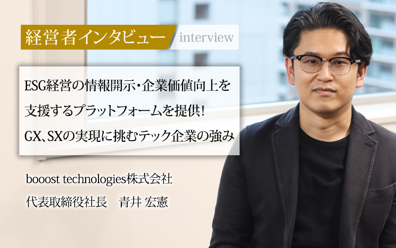 脱炭素化(GX)およびサステナビリティの実現(SX)が急務である今、ソリューションの提供に努めているのがbooost technologies株式会社だ。今回は日本を代表するプライム上場企業のSX/GXプロジェクトを数多く成功に導いてきた代表取締役社長の青井宏憲氏に、事業立ち上げのきっかけや同社の強みなどについて話をうかがった。