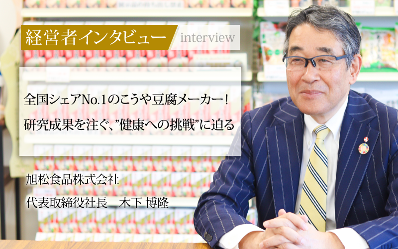 木下博隆/1962年、長野県生まれ。1985年、京都産業大学理学部卒業。日本電気株式会社を経て1992年、旭松食品株式会社へ入社。取締役執行役員チルド事業カンパニー長、常務取締役執行役員などを経て2009年、代表取締役社長に就任。