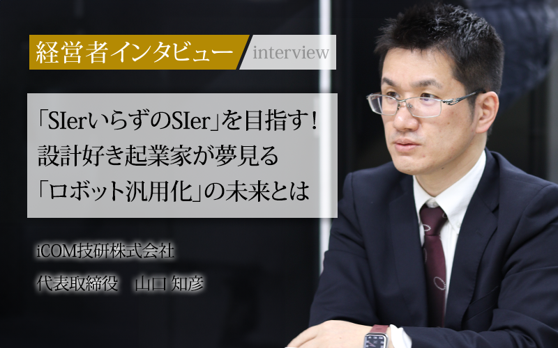 1968年より、日本国内で販売が始まった産業用ロボット。兵庫県小野市に拠点を置くiCOM技研株式会社は、制御設計会社からスタートし、現在ロボットビジネスのトータルサポートに注力している。同社、代表取締役の山口知彦氏に、起業のきっかけや今後の展開をうかがった。