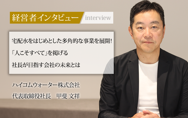 今回は、グループ会社の一つである宅配水事業を担うハイコムウォーター株式会社、代表取締役社長の甲斐文祥氏に、組織改革の苦労や今後の展望についてうかがった。