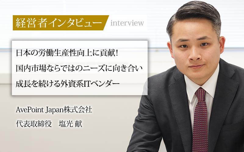 この問題を解決に導くのが、クラウドプラットフォーム向けデータマネジメントサービスを提供する、米国のITベンダー、AvePoint,Inc.だ。同社は2008年に日本法人AvePoint Japan株式会社を設立し、日本独特の企業文化や商習慣を捉えた事業戦略で市場開拓を進めてきた。「日本の労働生産性の向上に寄与したい」と夢を描くAvePoint Japanの代表取締役、塩光献氏に事業についてや、今後の展望をうかがった。