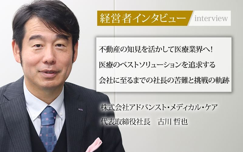 医療業界は人の生命や健康に関わるため、異業界からの参入はハードルが高い。そんな中、前職の不動産業界の知見を活かして医療施設の運営支援などに取り組み、医療分野に新しいソリューションを提供しているのが株式会社アドバンスト・メディカル・ケアの古川哲也氏だ。