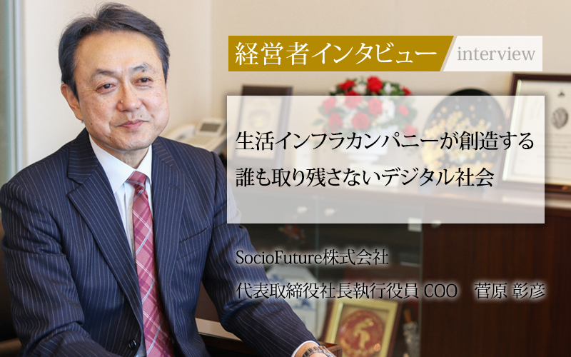 菅原彰彦/1964年、神奈川県生まれ、中央大学卒業。1988年日本NCR株式会社に入社し、1999年の日本ATM株式会社(現:SocioFuture株式会社)分社発足時に転籍。2022年からSocioFuture株式会社の代表取締役兼社長執行役員兼COOに就任。