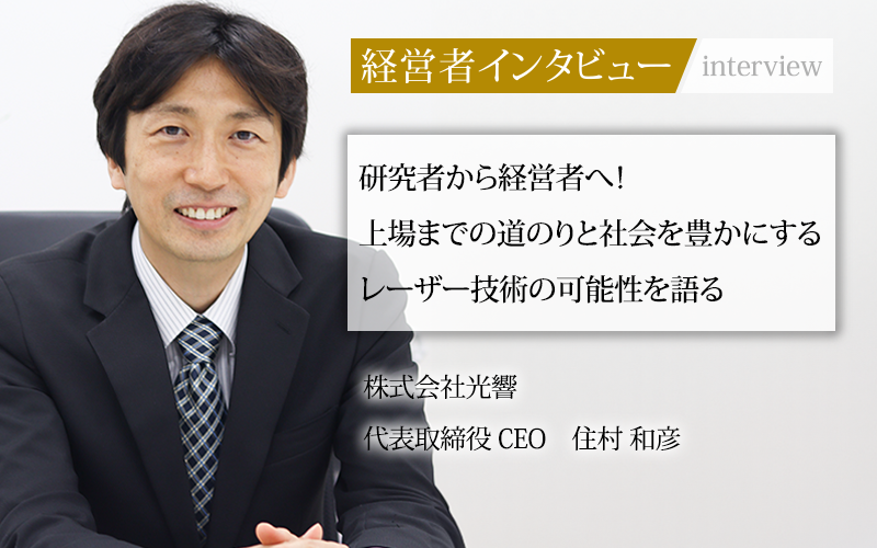同社の代表取締役CEOを務めるのは、長年レーザーの研究をおこなってきた住村和彦氏だ。博士号とMBAを取得した研究者である同氏が、なぜビジネスの道に踏み出すことになったのか。経営者になることを決意した背景、上場へのプロセス、そしてレーザー技術を通じて実現したい未来についてのインタビューを行った。