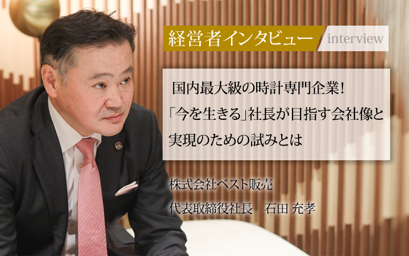 石田充孝/BEST ISHIDAグループ、株式会社ベスト販売の創業者、石田嘉孝氏の次男として誕生。明治大学商学部を卒業後、1992年、伊藤忠商事株式会社に入社。子会社や関連会社を管理する部署に配属。豪州や英国での駐在勤務を経て、2020年にDole Asia Holdings Pte.LtdにCFOとして出向。同年に株式会社ベスト販売の3代目の代表取締役社長に就任。TimeVallée Azabudai Hilsの他、SDGsを考えたVintageの拡大、TokyoFMでのラジオ番組、YouTube番組など、時計の発信にも力を入れている。