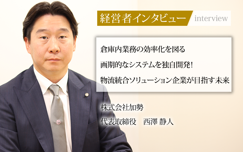 西澤静人/1980年、千葉県生まれ。市川学園高等学校卒業。飲食店や倉庫業に従事した後、2003年に総合物流会社のワールド・ロジ株式会社(現在は消滅)に入社。2010年に退職後、株式会社加勢に入社。2023年に代表取締役に就任。グループ会社の株式会社加勢ワークアシストおよび株式会社猪名川加勢の代表取締役も兼務。