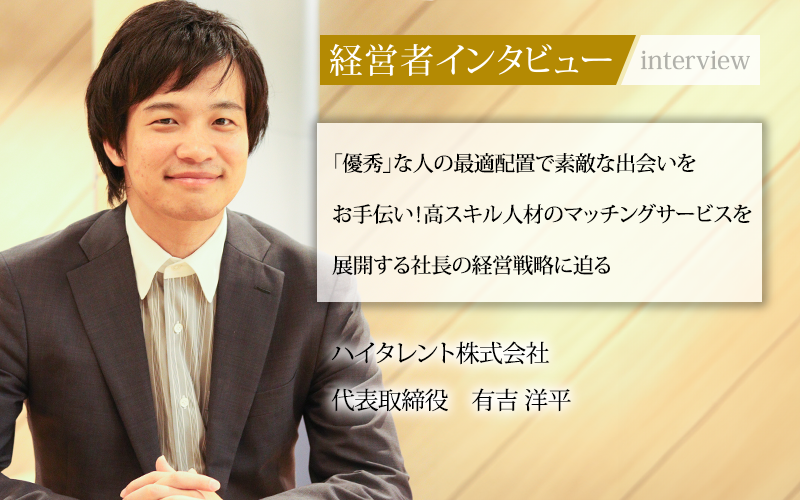 コンサルティングファームなどの出身者と企業の需要を結ぶマッチングサービス「HiTalent(ハイタレント)」を運営しているハイタレント株式会社。2000人を超える「優秀」な「高スキル人材」を、どのように開拓してきたのか。自身もハイタレント人材である、代表取締役の有吉洋平氏にお話をうかがった。