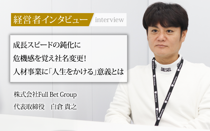 少子高齢化が進む中、人材関連ビジネスの市場規模は右肩上がりに伸びている。その中で業界トップを目指し、果敢なチャレンジを続ける企業がある。「forYou〜人生をかけてビジネスを〜」をビジョンに掲げる株式会社Full Bet Groupだ。