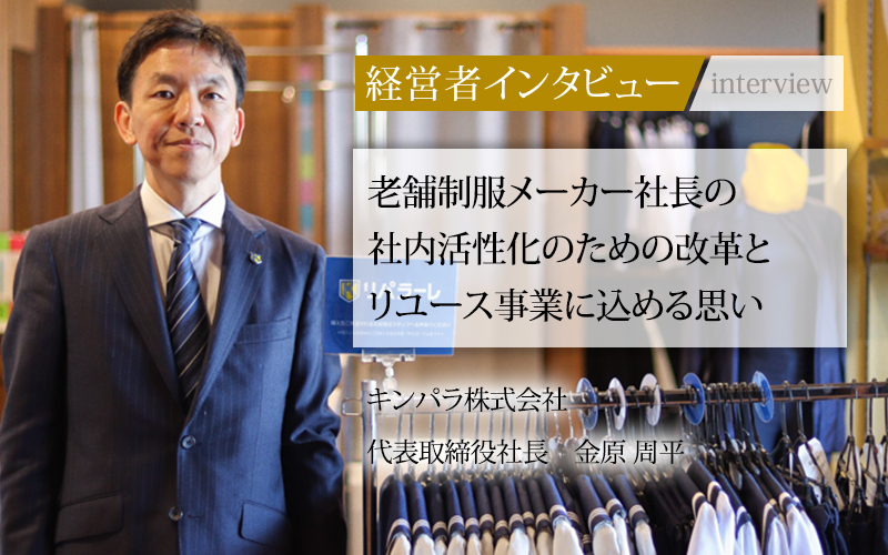 1934年に創業し、学校や企業のユニフォームの製造・販売を中心に、スーツ事業やリユース事業を展開するキンパラ株式会社。なかでも、2023年に立ち上げた学生服のリユース事業は、学生服専門店を運営する企業の取り組みとして全国的に珍しく、注目を集めている。