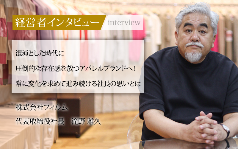 ブランドを擁する株式会社フィルムは、コロナ禍前にいち早く経営刷新に着手し、業績を伸ばした。すべてのデザインを手掛けながら、経営を統括する社長、滝野雅久氏にお話をうかがった。