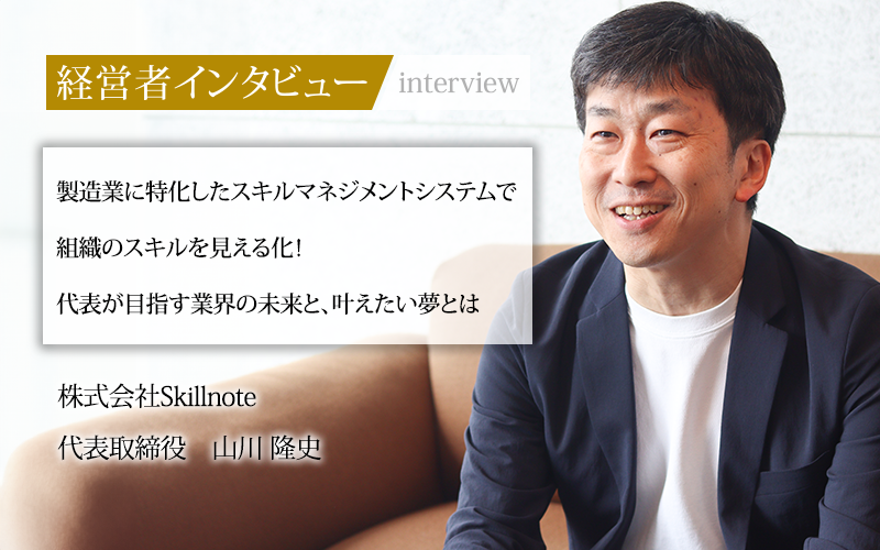 では、日本の製造業を活性化できたら、日本全体が今より元気になるのではないだろうか。そんな考えから製造業をサポートする「Skillnote(スキルノート)」事業を起こしたのが、株式会社Skillnoteの代表取締役である山川隆史氏だ。