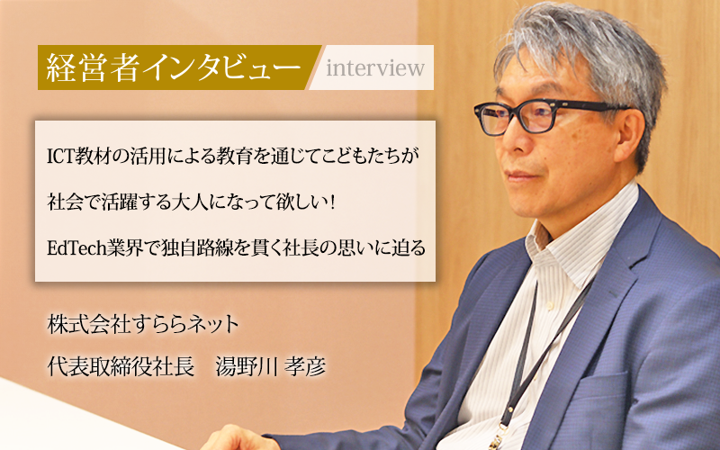 AI技術を使って生徒の個性と能力に応じた学習を提供するICT教材「すらら」を生み出し、さまざまな学習テーマを織り交ぜながら国内外にサービスを広げている代表取締役社長の湯野川孝彦氏に、「すらら」にかける思いを聞いた。