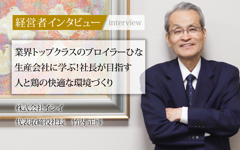 竹内正博/1951年徳島県生まれ。ミズーリ大学大学院卒。その後、金融機関や貿易会社に勤め、5年間の修業期間を経て、株式会社イシイの前身である石井養鶏農業協同組合の子会社である株式会社アイピー通商に入社。その後、1991年に株式会社イシイの代表取締役に就任。