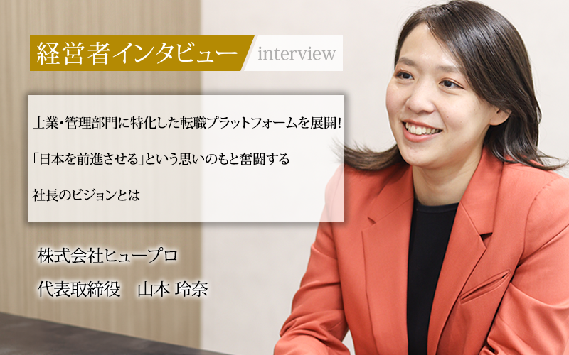 株式会社ヒュープロは、士業・管理部門に特化した転職プラットフォーム「ヒュープロ」を運営する企業。山本玲奈氏が学生時代に立ち上げた会社で、同社のサービスは創業から9年で業界最大級の規模にまで成長している。