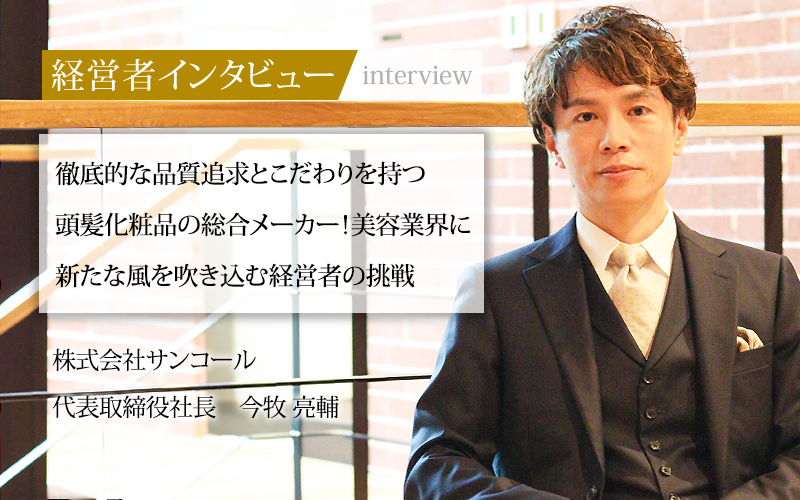 美しさと豊かさを追求すること。株式会社サンコールは一貫してそれを目指した商品開発に取り組んでいる。代表取締役社長として会社を率いる今牧亮輔氏は、美容を通じて人々の人生に寄り添い、心の豊かさを育むことこそが自らの使命だと話す。その言葉には頭髪化粧品の総合メーカーとしての誇りとこだわりが込められている。今回のインタビューではその経営哲学と同社のものづくりにかける思いに迫った。