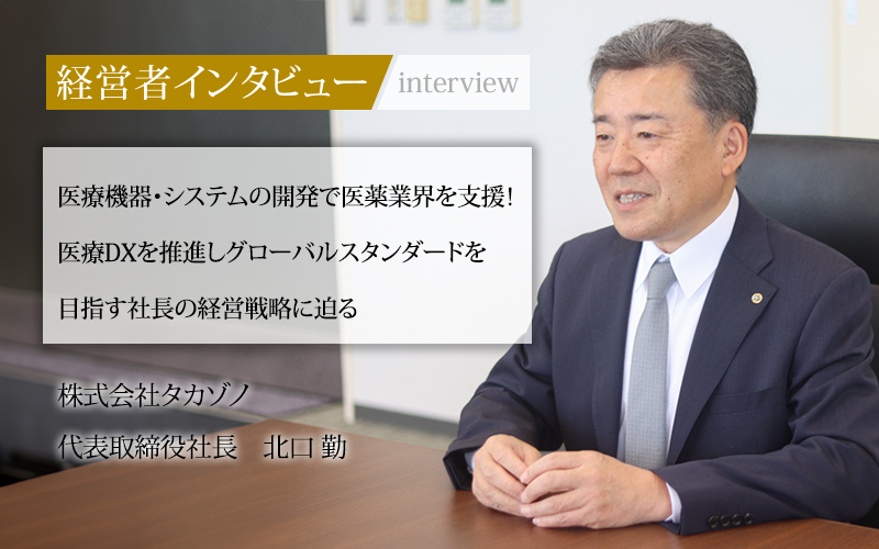 株式会社タカゾノは、60年以上医療機器・医療システムを製造販売する会社だ。錠剤や粉薬を個別に包装する「調剤分包機」や「自動調剤台」において、国内シェアはトップクラスを誇る。医療DXの波に乗り、海外進出も進める同社の代表取締役社長、北口勤氏に未来への展望や求める人材像についてうかがった。